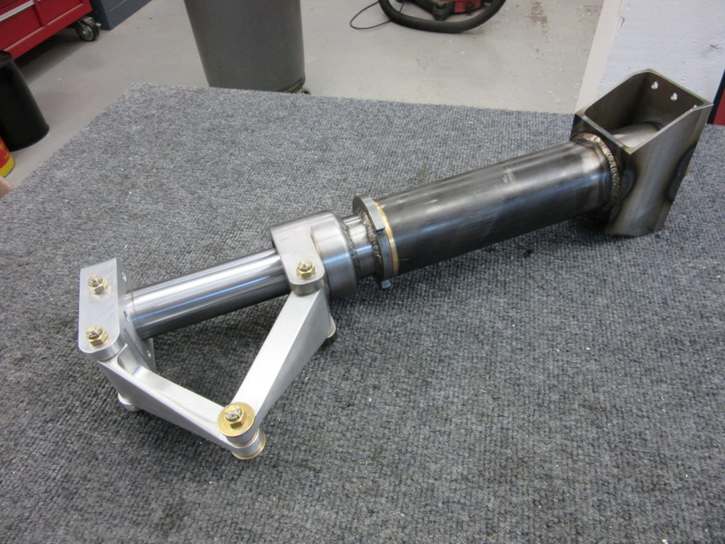 This is the nose strut for a home-built airplane that a neighbor is building. He had a rough idea what he wanted along with the necessary overall length, but no real knowledge of how a landing gear strut should be designed. The problem was that he also had two expensive parts that were already (partly) made, so I was stuck with having to work my design around those two parts and make it all work.