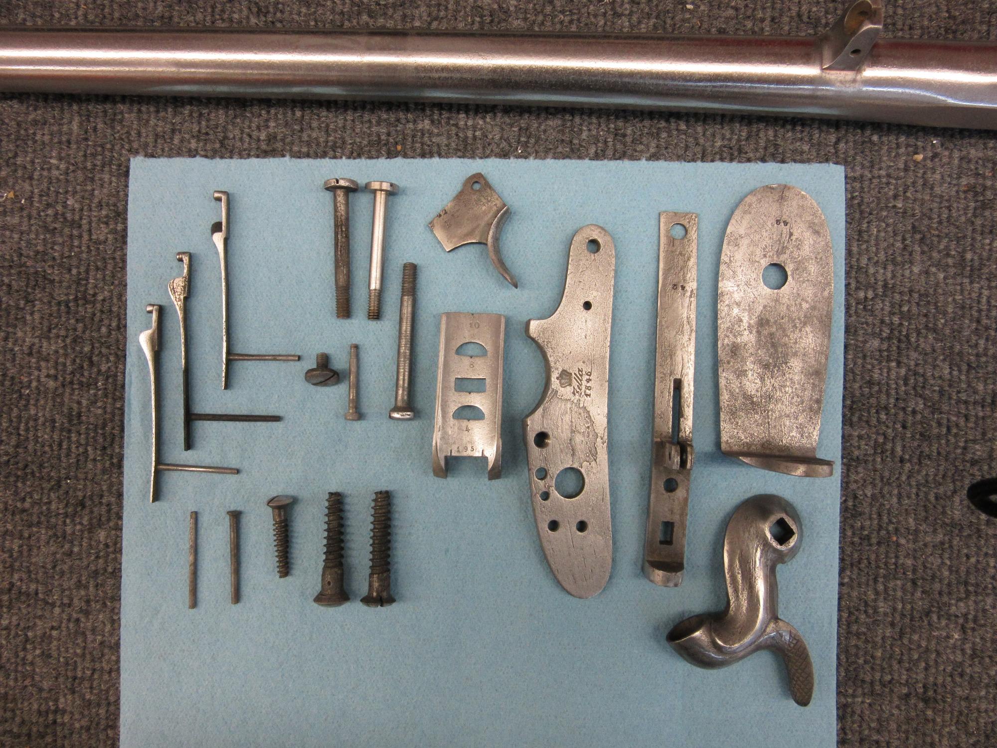 After many hours of disassembly, cleaning, polishing and putting it all back together, this is what it looked like. One of the bolts was broken, so I took a surplus aircraft bolt from my stash of parts and made a new bolt on my lathe. It has a weird thread so I couldn’t simply use a modern bolt and modify the head. And if you are wondering why all of the steel bits are brown, it’s because the gun blueing process had not yet been invented. Guns of that era were treated with… yep, you guessed it… browning. It looks a little red because that’s how it looks fresh from the browning solution. But the red slowly fades to a dark brown after several months.